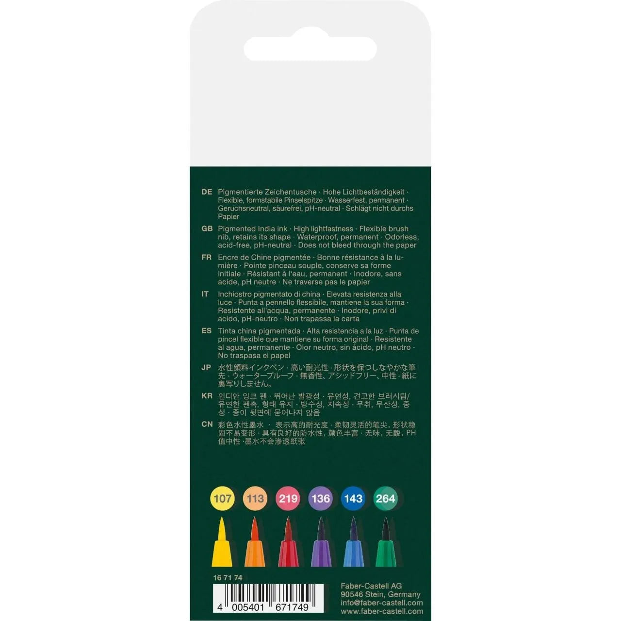 Pitt Artist Pen Brush India ink pen, wallet of 6, Col. wheel