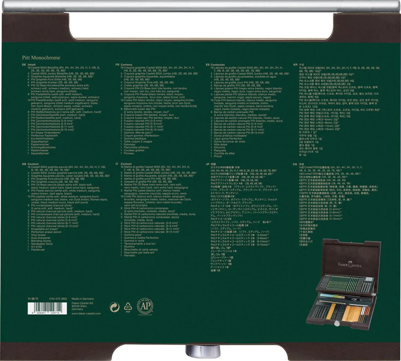 - Faber-Castell Pitt Pencil Monochrome Wooden Case 86 pieces 112971